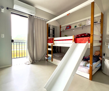Localizado na Rua Xisto Bez, 447, casa 03, Bananal do Sul, Guaramirim - Unidade 03 - - 8 placas fotovoltaicas - Painel ripado na sala - Móvel no banheiro superior. - 3 aparelhos de ar-condicionado. - Portão elétrico.